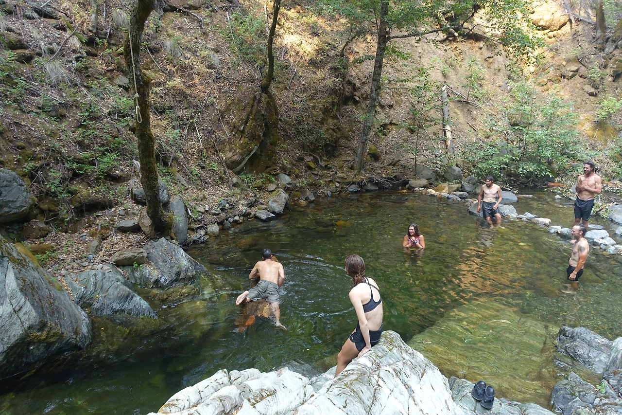 Wildman과 T-bunnz가 출발하고 30분이 더 지난 후에 출발한 우리는 라즈베리를 딴다고 시간을 보낸 것도 모자라 'Seiad valley'로 향하는 큰 다리 아래로 흐르는 강을 그냥 지나칠 수 없어 길가에 배낭을 벗어두고는 수영을 하기로 했다. 내려가는 길이 포이즌 오크로 뒤덮여 있었지만 아랑곳하지 않고 속옷만 입은 채로 돌진했다. 모처럼 물속에서 한가한 시간을 보내고 있던 비버도 갑자기 출현한 우리로 인해 쉴 곳을 잃고는 시끄러움을 피해 어디론가 사라져 버렸다. 너나 할 거 없이 물 만난 고기처럼 첨벙첨벙 물속에서 뛰어노는 모습이 꼭 동네 개구쟁이처럼 못 말리는 혈기왕성한 하이커들이었다.