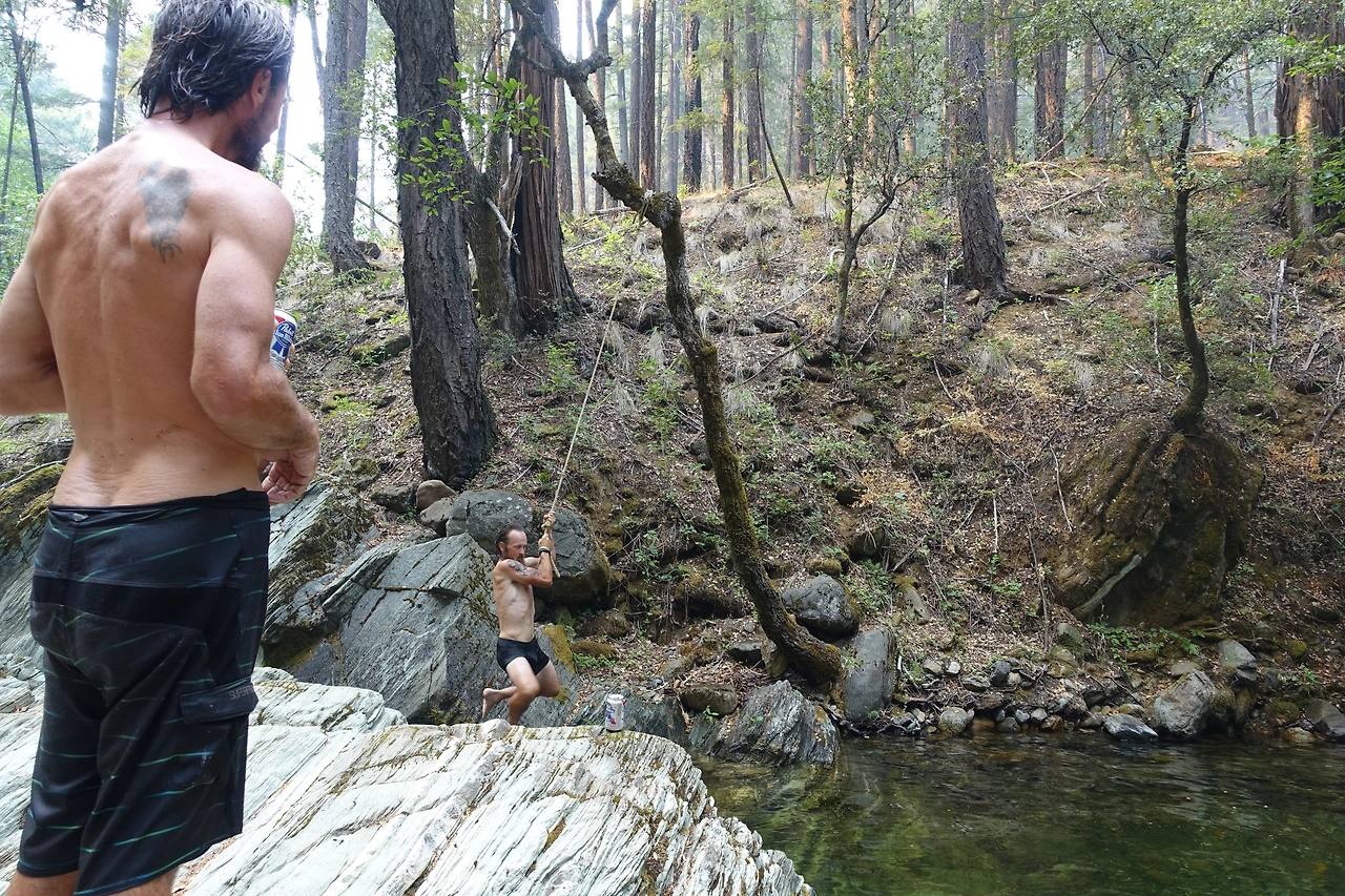 공짜로 잘 수 있다는 것만으로 좋았는데 자연 풀장까지 있다는 말에 우리는 온 동네가 떠나갈 정도로 환호를 지르며 기뻐했다. 트레일로 돌아간다는 Gentle giant만 빼고 42와 Whisper까지 함께 마음씨 좋은 아저씨의 차로 이동했다. 덜컹거리는 트럭의 뒷칸에 앉아 약 10분 정도 비포장도로를 굽이굽이 달려 도착한 곳은 아저씨 말대로 텐트를 10동은 칠만한 공간에 옆에 계곡까지 흐르고 있는 정말 환상적인 공간이었다. 아저씨는 정확히 내일 새벽 6시에 데리러 온다는 말을 남기곤 다시 Store로 돌아가셨고, 우리는 바로 각자 잡은 자리에 배낭을 내려두고는 옷을 벗어던지며 자연 풀장을 향해 몸을 날렸다. 계곡 물은 얼음처럼 차가웠지만, 한층 뜨거워진 분위기 덕분에 추운 줄도 모르고 다이빙을 하면서 신나게 놀았다. 옆에 있는 통나무를 타고 마치 워터슬라이드를 타듯 계곡을 내려오기도 했고, 사온 맥주를 마시며 다들 입술이 새파래질 때까지 나올 생각을 안 했다.