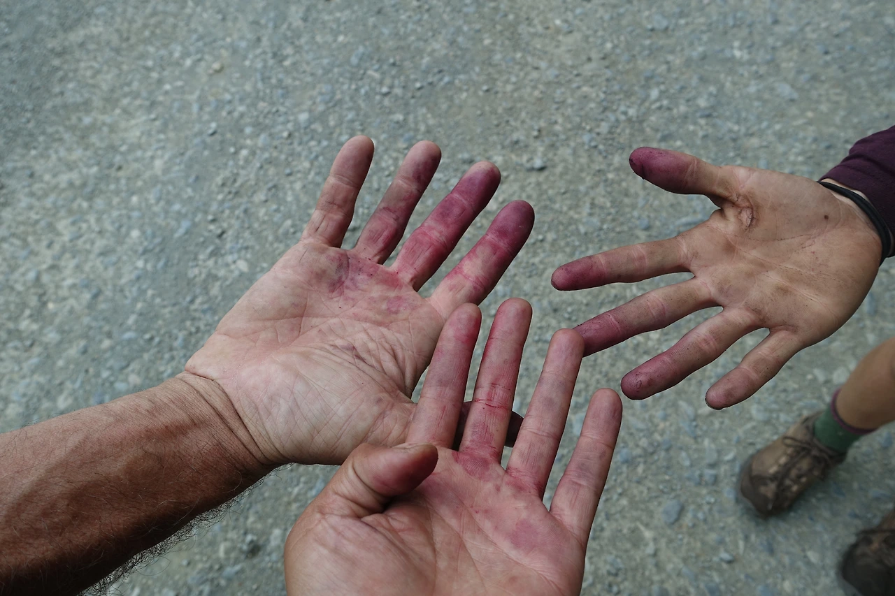 마치 무언가에 홀려 이성을 잃은 사람들처럼 연신 길가에 난 라즈베리만 따고 있는 나와 Phish, Chef를 보고는 더 이상 못 기다리겠다는 듯 Wildman이 말했다. 그도 그럴 것이 벌써 30분째 가던 길을 멈추고 라즈베리를 따는 일에만 몰두를 하고 있었다. 참다 참다 인내심이 다 한 Wildman과 T-bunnz가 먼저 출발하고 나서도 우리는 라즈베리를 따는 일을 멈출 수가 없었고, 손 끝이 보랏빛으로 물들고 각각 물통 두 개씩을 라즈베리로 꽉 채우고 나서야 우리는 멈췄던 길을 다시 나설 수 있었다. 왜인지는 몰라도 라즈베리만 보면 이성을 잃었다. 그만큼 비타민이 부족하기도 했고, 인위적이지 않은 달달한 그 맛이 나를 사로잡았기 때문이다.