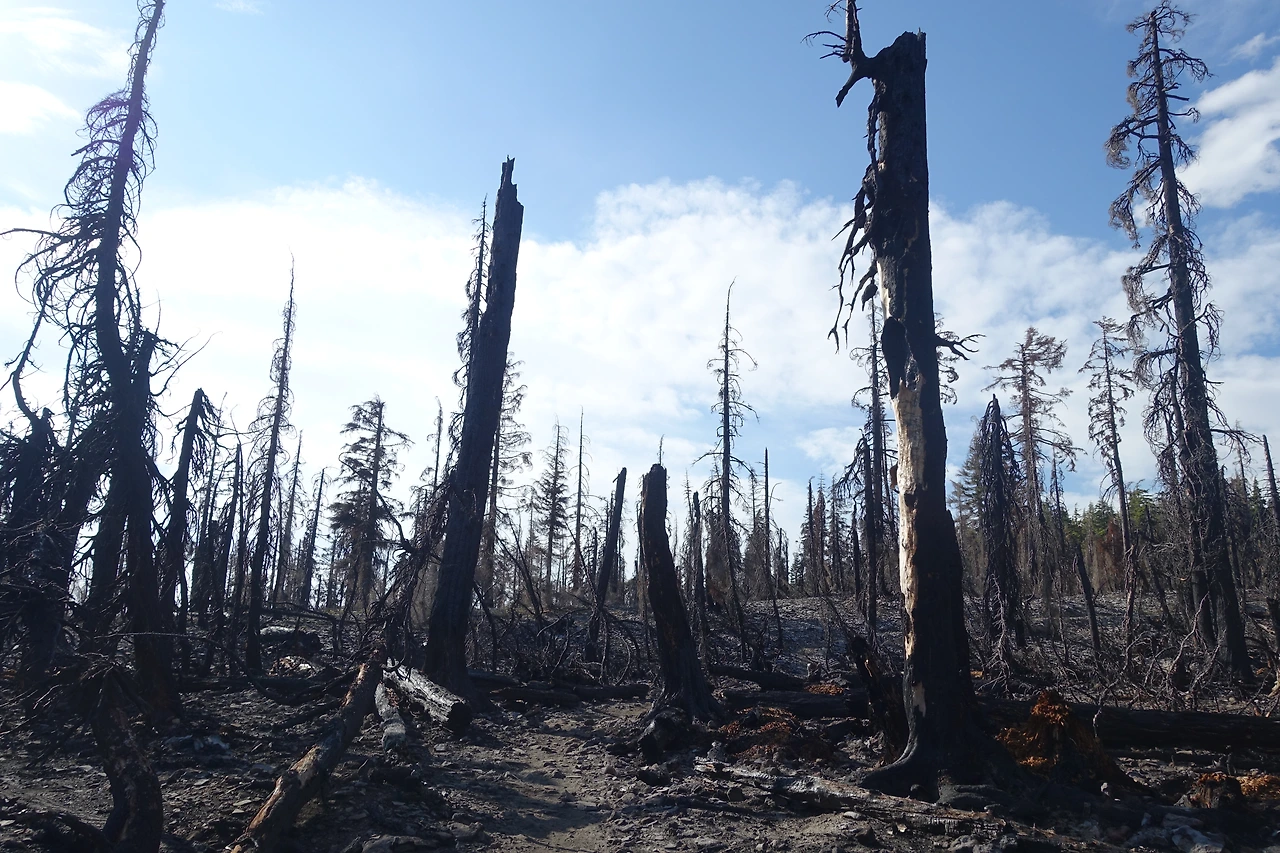 오늘 걸어온 길은 유독 불에 탄 구간이 많아 기분이 씁쓸했다. 불에 타 앙상한 가지만 검게 그을린 채 남아 있는 나무들을 보고 있자니 마치 내가 나무들의 무덤에 와 있는 듯한 착각이 들기도 했지만, 아직 새싹도 자라지 못하는 메마른 땅 그리고 모든 게 황량하기만 한 이 곳에서도 그 생명의 끈을 놓지 않은 채 꿋꿋이 자리를 지키는 모습에 감동을 받았다.