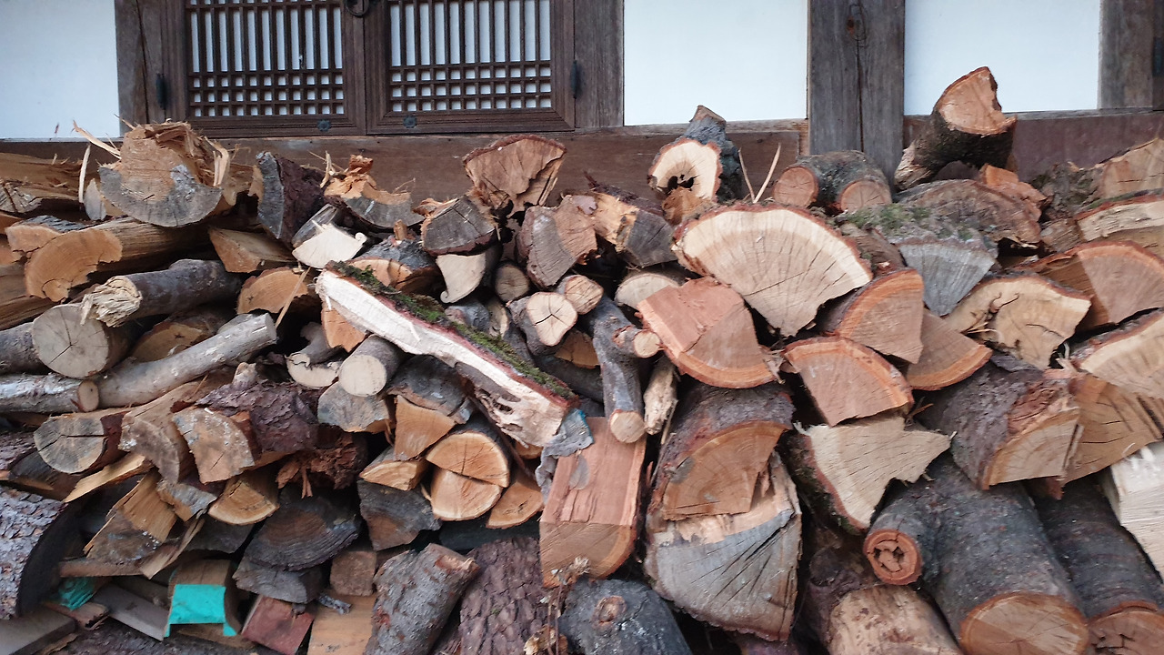<지허 스님을 다시 뵐 수 있었던 승주읍 금둔사에는 겨울을 나기 위해 패어놓은 장작이 저마다의 사연이 있는 듯한 모습으로 쌓여있다>