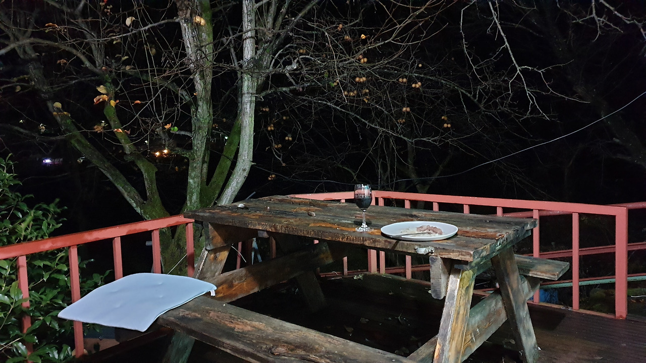 멋진 도시 순천의, 눈이 부시게 아름다운 승주읍 산마을에서의 마지막 밤이에요. 간간이 비가 내리지만 가을바람은 그리 춥지 않고, 멀리서 작은 개 한 마리가 타지인의 냄새라도 맡았는지 짖어대고, 귀뚜라미 소리가 들리는 밤이에요.