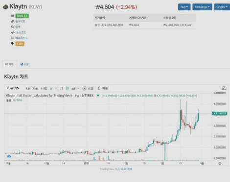 하지만 필자는 친구의 코인 투자 권유에는 신경도 쓰지 않았고, 올해 3말 초까지만 해도 '그따위 코인 같은 건 다 엉터리라서 조만간 무너질 거'라고 생각했다. 그런데 그게 아니었다. 친구가 말한 직후, 클레이 코인은 4배 가까이 상승하더니, 다음카카오의 시가 총액 50조를 뛰어넘고 말았다.