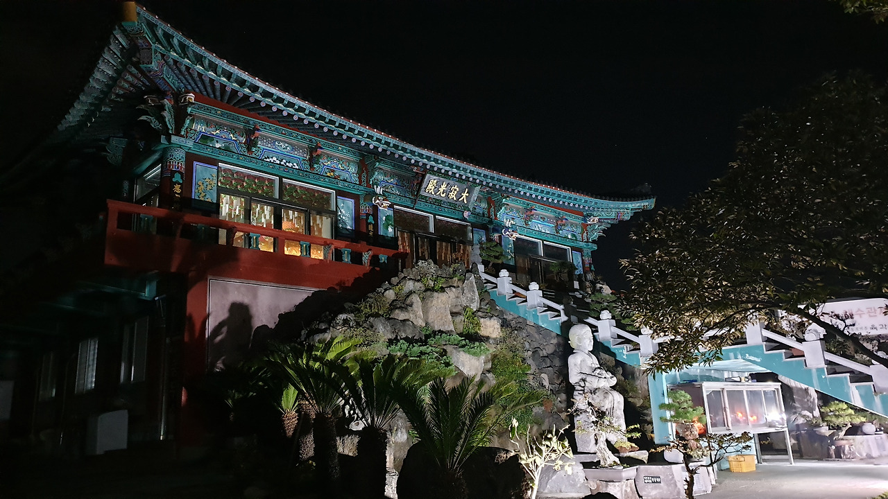 <서귀포시 표선면 민가 사이에 위치한 사찰 [육각사] 경내에도 달빛이 비치고... >