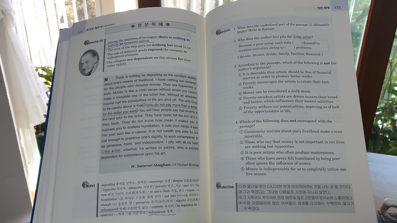 라고 생각하면서, 내 짝 용구처럼, 그 책을 독파하기 시작했는데, 나는 1주일 만에 그 책에 질려버리고 말았다. 일단 문법 파트 설명이 불친절했고, 독해 구문이 내 영어 실력과 비교해서 너무 어려웠기 때문이다. 공부머리가 단대부고 최고였던 내 짝 용구에 비해서, 필자는 한참 뒤떨어지던 학생이었다.