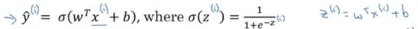 우선은 저번 글에서 다루었던 내용을 다시 한번 상기시켜 보자. 앞서 Logistic Regression을 구현하기 위하여 sigmoid라는 함수를 쓴다고 했었고, y^(또는 y hat, y predict)가 아래와 같은 수학적 정의를 가진다고 하였다. 복습하실 분은 지난 글을 참조 ( 1-5.Logistic Regression https://brunch.co.kr/@minsukshin/23)