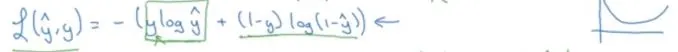 그래서 이를 위해서 log함수를 사용하여 Loss Function을 아래와 같이 정의한다면, Convex(오목)한 함수를 구현할 수 있고 이러한 상황에서 w, b의 최적 값을 찾아가는 Gradeint Descent 알고리즘이 더 빠르고 정확하게 작동하게 된다. 아래 수식이 다소 복잡해 보일 수 있으나 눈을 크게 뜨고 천천히 훑어보면 그렇게 어려운 개념은 아니다.