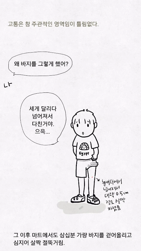 그리고 이건 내 마음이기도 한데, 자식이 되도록이면 매사 긍정적이고 씩씩하게 살았으면 하는 바람에서 일 것이다. 나도 내 아들 딸이 '외로워도 슬퍼도' 울지 않는 캔디처럼 힘들어도 '이까짓 거 뭐' 하고 일어나길 바란다. 나도 은연중에 부모님 영향을 받아서 아이들이 다치면 "(별거 아니니까) 괜찮아" 하는 경우가 많다.