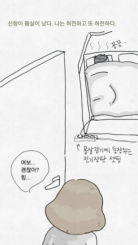 신랑이 몸살이 나서 누워있다.