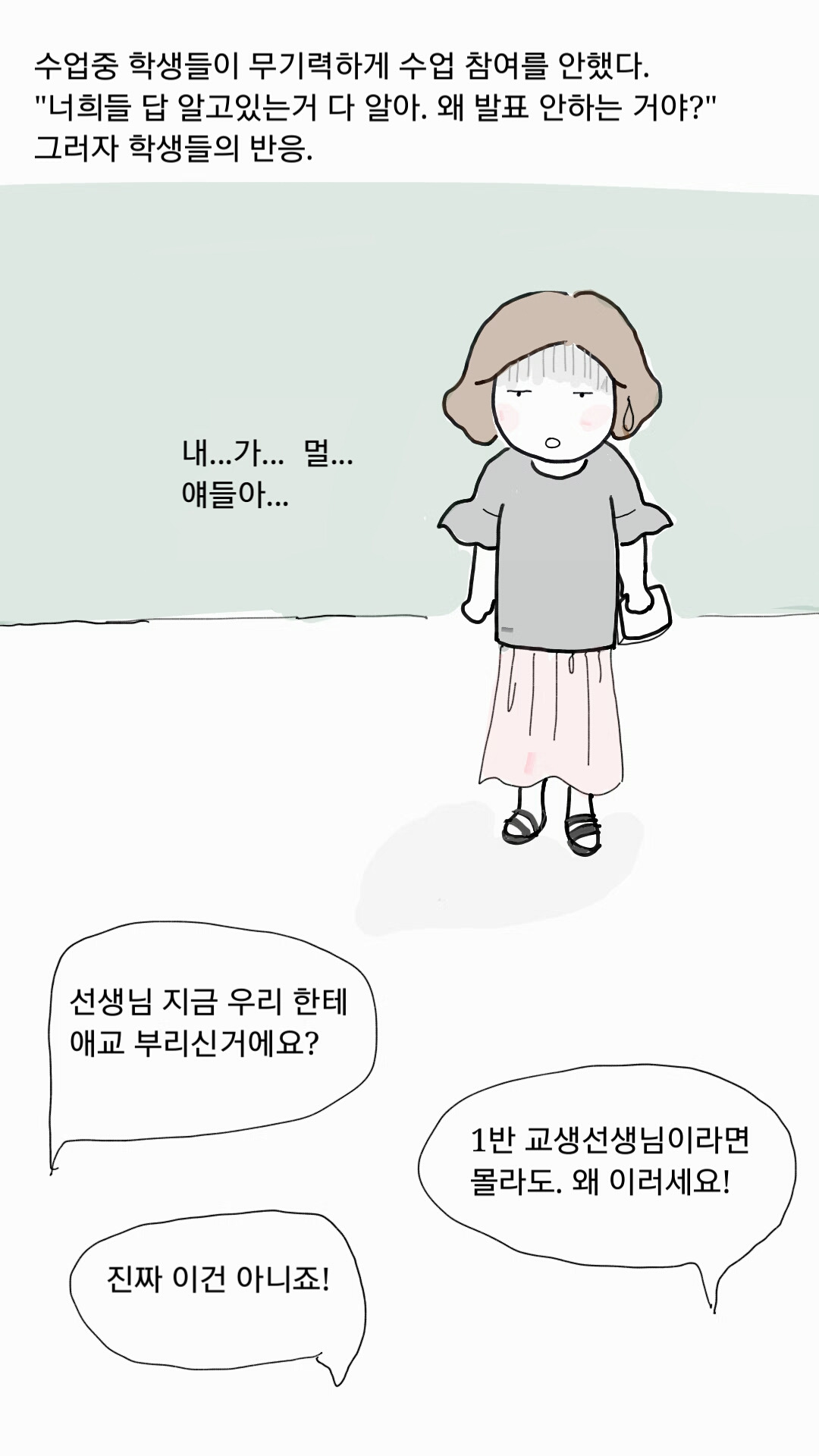 "야, 너희들 답 알고 있는거 다 알아. 왜 발표 안 하는 거야?"