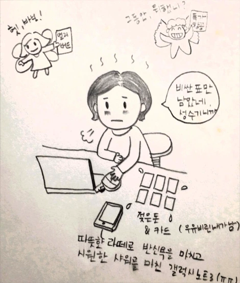 따뜻한 커피를 잔뜩 뒤집어쓴 핸드폰을 깨끗한 물로 씻어야 하는 심정을 아는지..