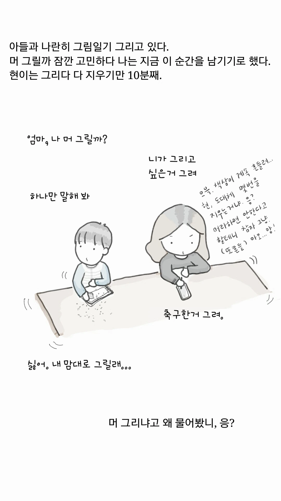 이제 같이 앉아 일기를 그리다니...