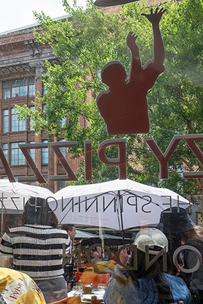 벽돌과 흰 장식이 규칙적으로 이어진다.