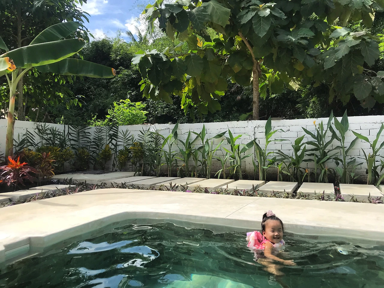아이를 키우고 살자고.. 집에는 수영장이 있으며