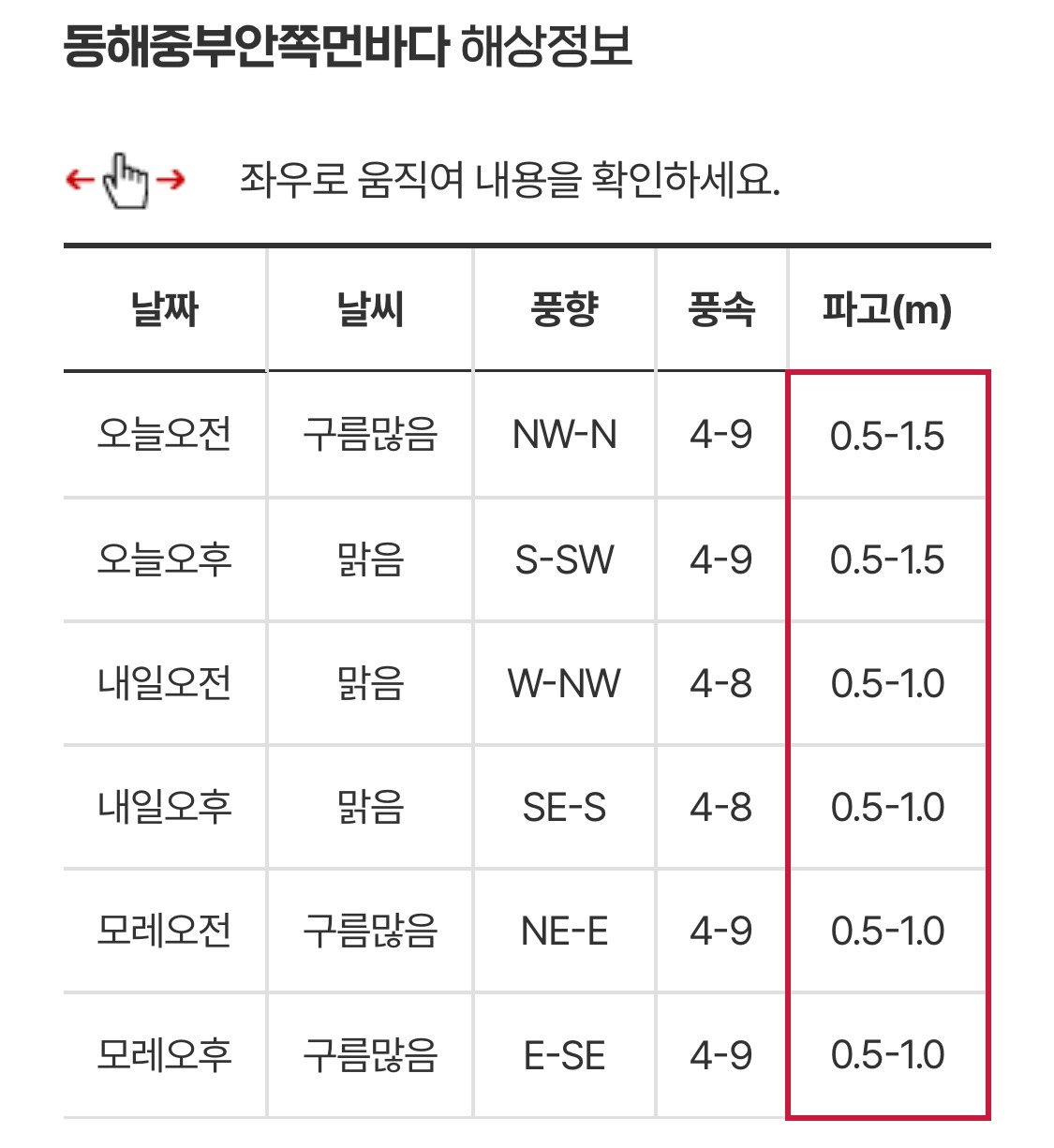 오늘 조회했을때는 최대파고가 1.5이기 때문에 독도접안이 가능하다!
