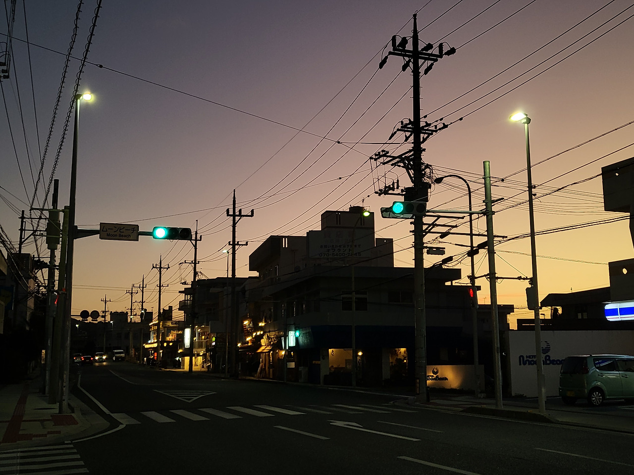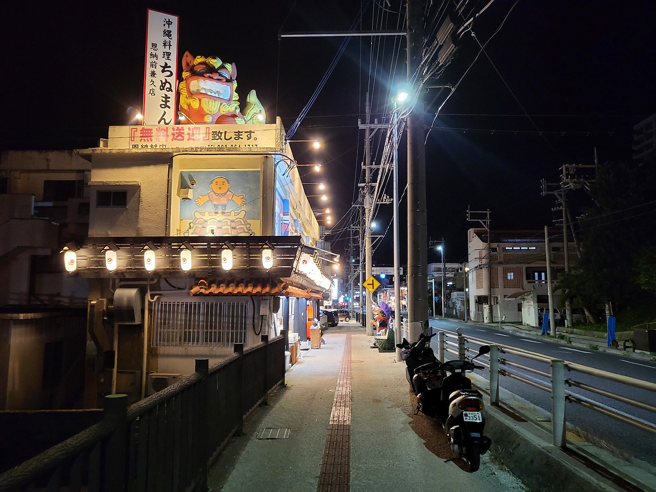 도시의 도로처럼 밝지가 않다. 가로등이 있어도 도로는 어둡다. 대신 밤에 영업 중인 편의점과 술집들의 간판이 도로를 밝게 밝힌다. 조금 걸어 나가면 이자카야들이 있어 저녁 한 잔 하기엔 무리가 없다.