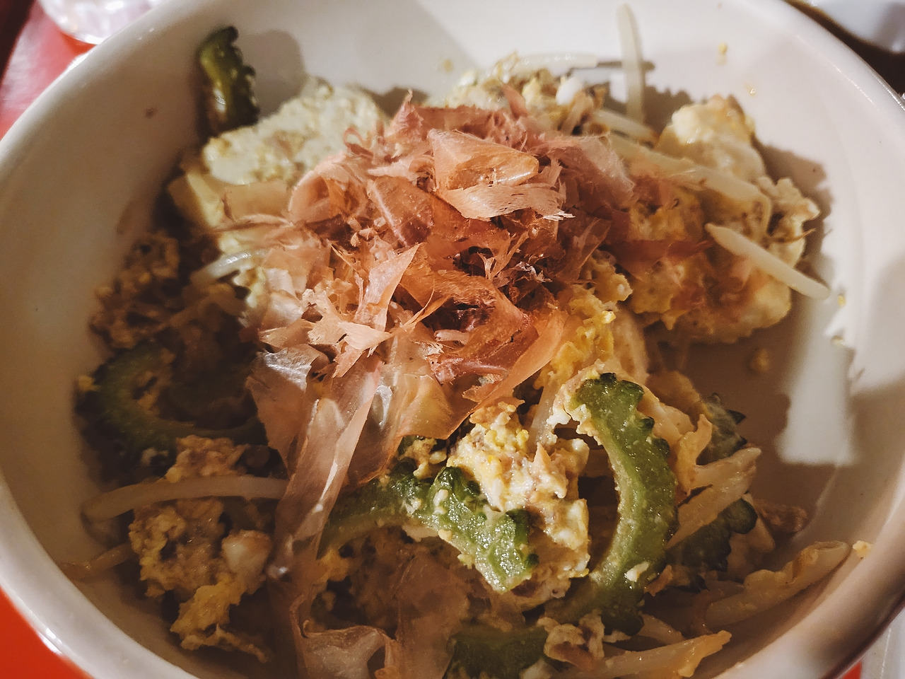 ‘참푸르’는 섞는다는 의미의 오키나와 음식으로, 일종의 볶음 요리이며 여러 종류의 참푸르 요리가 있다. '고야 참푸르'는 쓰디쓴 고야, 돼지고기, 두부, 계란, 각종 야채를 섞어 볶아 만든 요리이다. 따져보면 꽤나 건강식이다. 고야 참푸르를 안주로 몇 번 먹어봤는데, 전부 다 별로였다. 고야의 쓴 맛이 너무 강하고, 먹을만한 요리라는 생각이 든 적이 단 한 번도 없었다. 하지만 우연히, 함박스테이크를 먹으러 동네 가게인 ‘Burger shop H&S’에 갔다가 사이드 메뉴로 고야 참푸르를 시키면서, 나는 이 고야와 갑자기 친해지게 되었다. 이 집은 함박스테이크도 맛있었지만, 따뜻한 고야 참푸르가 너무 내 입에 맞았다. 처음으로 고야 참푸르를 맛있게 먹으며 고야를 받아들였고, 이후로 다른 음식에 있는 고야를 만나도 씁쓸함을 즐기게 되었다. 받아들이고 나니 급속도로 가까워졌다.