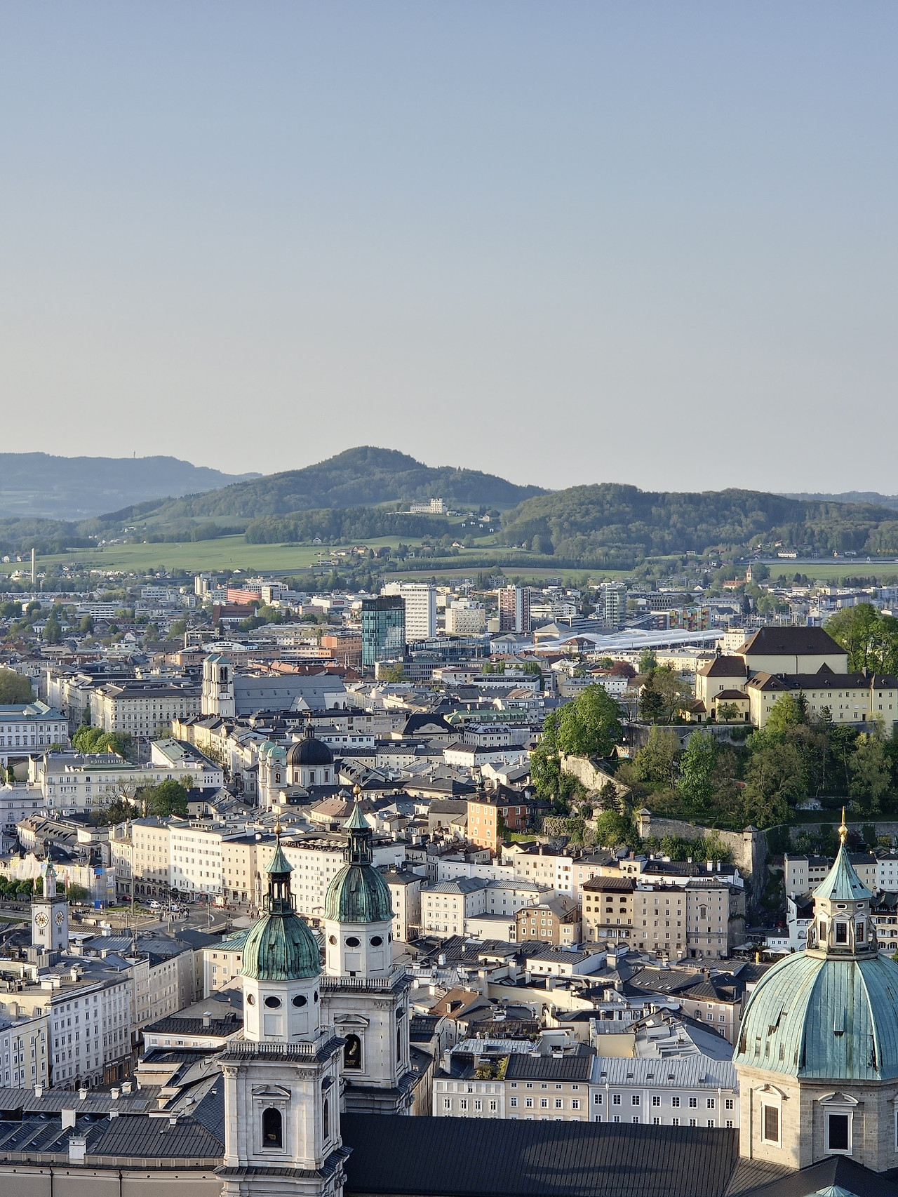 간단히(?) 한 잔 걸치고 올라가는지라 경사가 좀 가파르다는 느낌을 받았지만, 뷰 포인트에 도달했을 때 힘든 느낌은 싹 사라졌다. 노을이 지는 즈음의 잘츠부르크의 풍경은 정말로 아름다웠다.