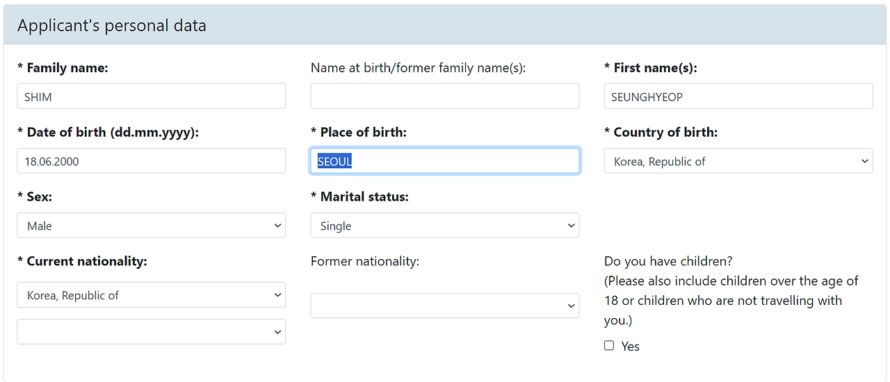 이후 바로 아래에서 부모님 인적사항을 물어보는데, 여기에서도 똑같은 질문이 나온다. 그리고 독일의 경우 날짜를 일-월-년 순으로 입력하니 이 점 참고하여 입력하시길...!