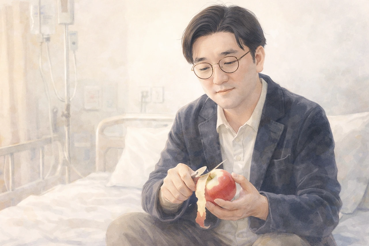 병원에 있으면서 남편과 나 둘만의 시간을 가져보니 일상에서 보이지 않았던 것들이 보인다. 16년 차 부부의 사랑은 사과 한 알에서 전해지는 무심한 듯 다정하게 다가온다.