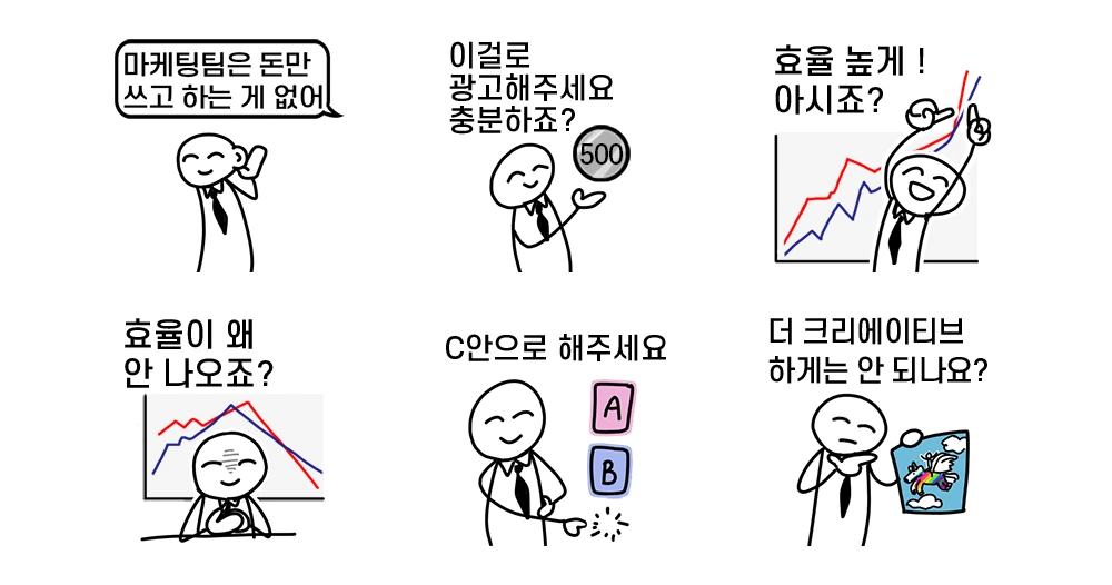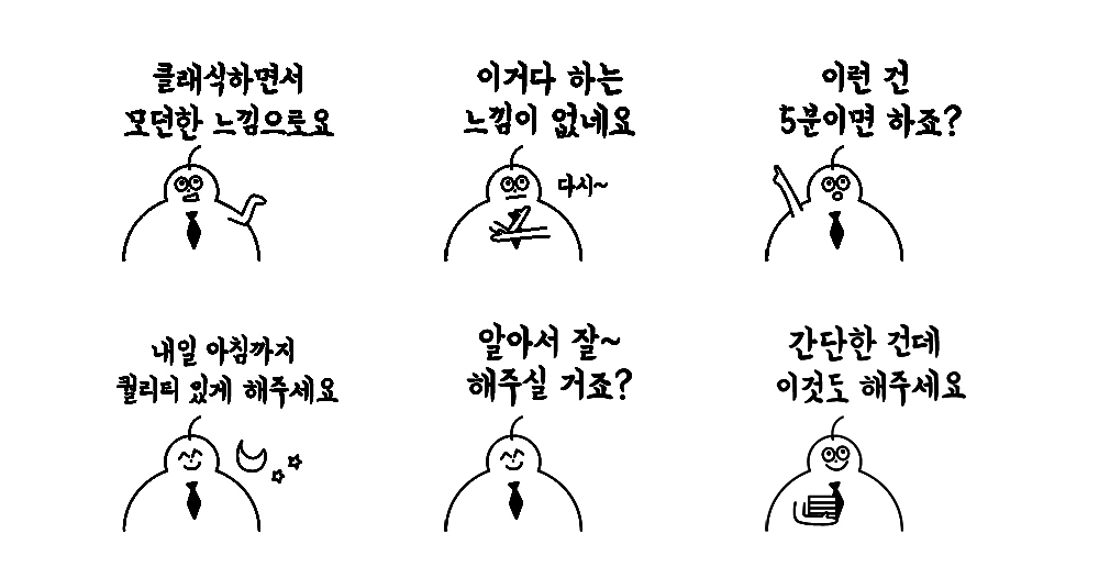 "타겟은 이거구요 메시지는 이거랑 저거랑 요것도 담아주시고요 트렌드도 찰떡같이 반영해주시되 최대한 빨리해주세요 근데 혹시 더 싸게는 안 되나요?"