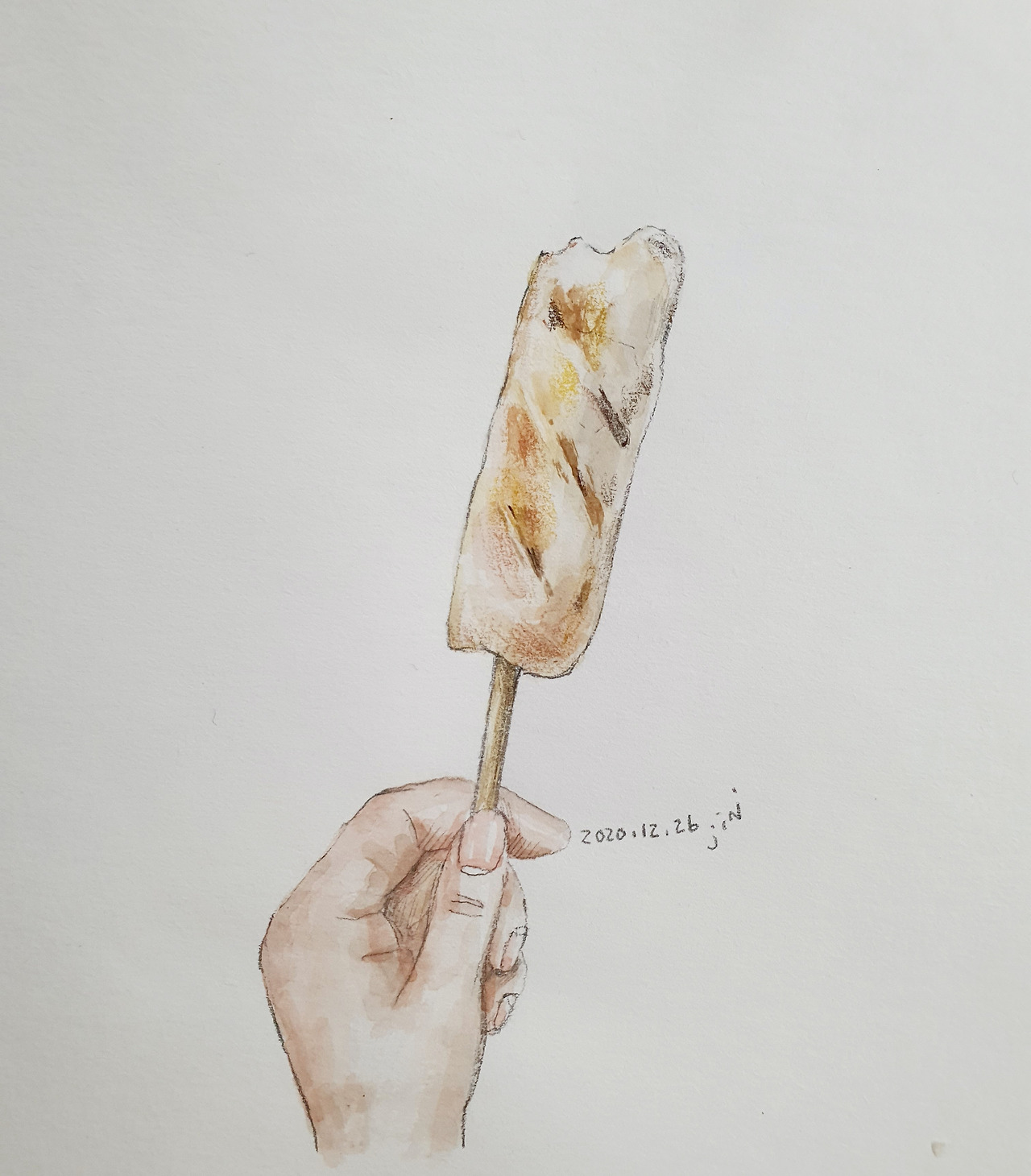 까칠하고 단단한 손으로 할아버지는 가장 먼저 말랑말랑하게 잘 구워진 가래떡 하나를 호호 불며 건네주신다.