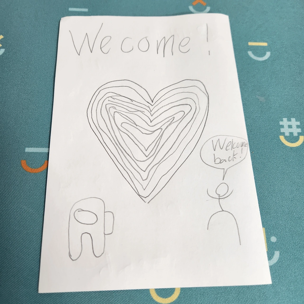 2박 3일을 잘 버티고 집에 돌아오면, 사랑스러운 아들의 응답이 내 책상 위에서 기다리고 있었다.