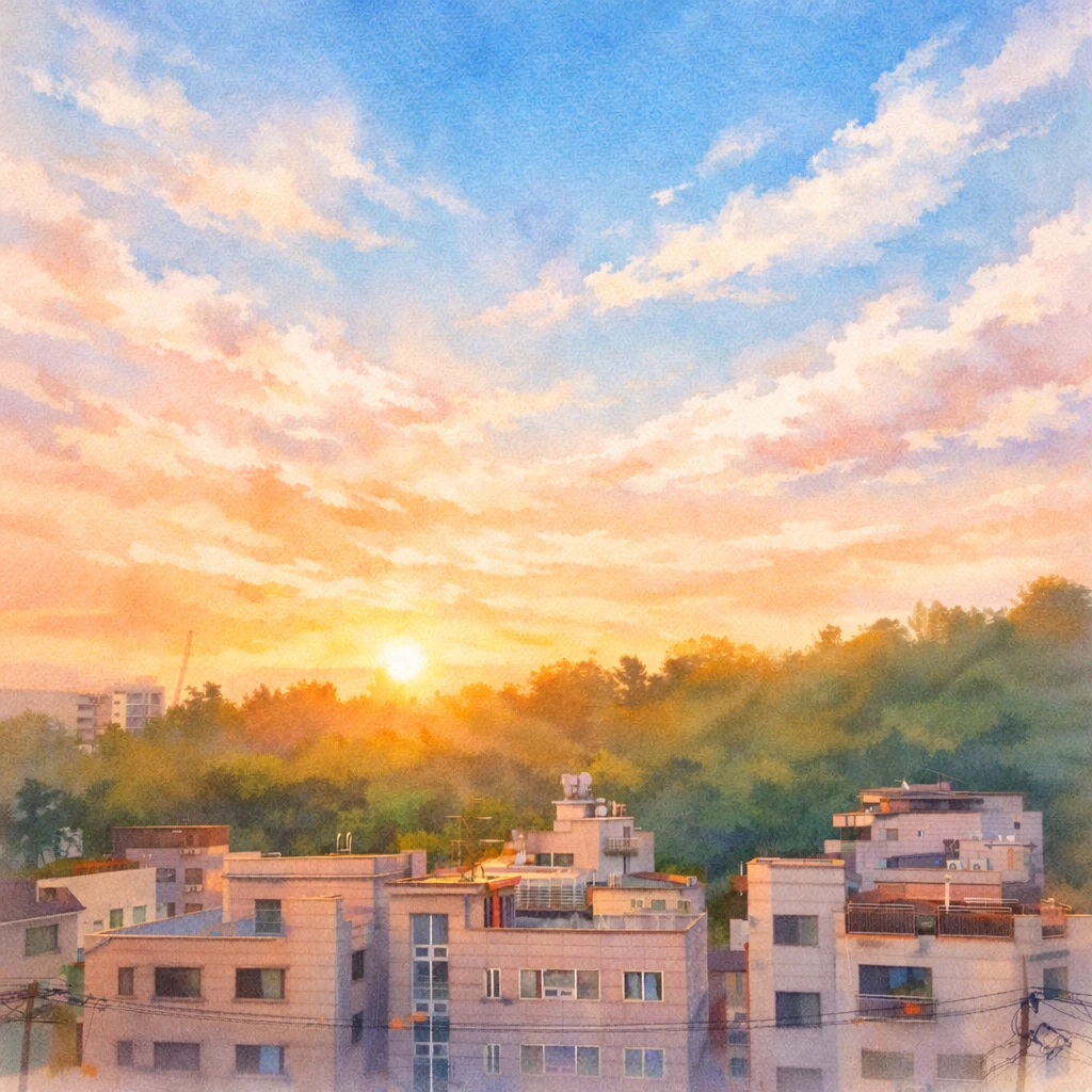 갑자기 ‘아들 아침 뭐 주지?’ 란 물음이 떠오른다. 잠시 고민하다, 지워버린다. 하늘의 붉은 기운이 사라지고 솜털 같기도, 깃털 같기도 한 잔잔한 구름들이 퍼져나가며 흘러가는 걸 바라본다. 그냥 좋다. 비로소, 오늘 하루가 시작된 것이 기뻐진다. 짧은 잠옷 밖으로 나온 팔과 다리에 스치는 바람 덕에 배 갑판에 누워있는 기분이다. 요가소년의 호흡영상을 틀어놓고 눈을 감는다. 아직도 뻣뻣한 어깨의 긴장을 내려놓으려고 시도해 본다. 배와 가슴으로 호흡을 느껴본다. 창 밖의 초록 공기가 내 코로 들어오는 상상을 한다.