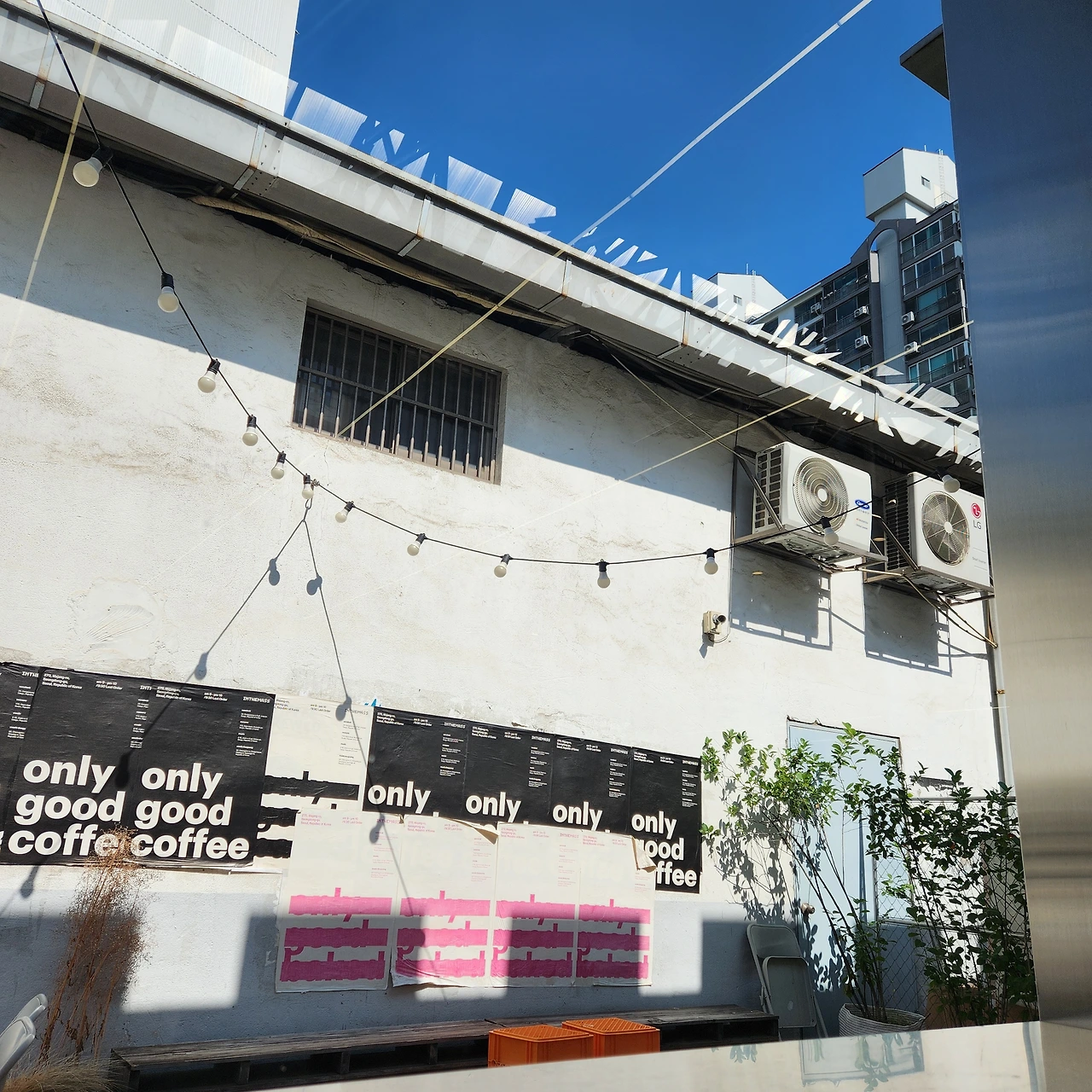 좋아하는 창가 자리에 앉으면, 밖엔 허름해서 더 이국적인 카페의 마당이 보인다. 오늘 내 코가 고른 커피는 볼리비아. 바리스타가 드립 커피를 추출하는 걸 보는 건 또 다른 즐거움이다.
