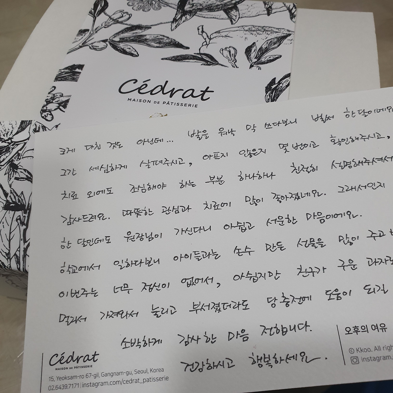 기다리고 기다리던 퇴사 날, 그동안 정들었던 환자분들이 선물을 하나둘씩 챙겨 주셨다. 음료며 바나나며 빵이며, 직접 만든 쿠키나 초콜릿 같은 것들까지. 병원을 옮기면 꼭 알려달라고 연락처를 주고 가시는 분들도 있었고 저렇게 정성스러운 편지를 전해주시는 분들도 있었다. 그런데 이상하다. 진심을 건네주시는 분들은 오랫동안 병원을 다닌 분들, 그러니까 그동안 썩 좋아지지는 않은 분들이다. 나는 의아했다. 정작 치료적으로 도움을 드린 게 하나도 없는데. 만성적인 질환으로 고생하는 분들이라 그저 얘기를 들어드린 게 다인데. 나는 의사로서 직무유기를 한 것이 아닌가. 능력 부족으로 그들에게 오히려 미안해해야 하는 것이 아닌가. 그들은 내게 왜 고마워하지.