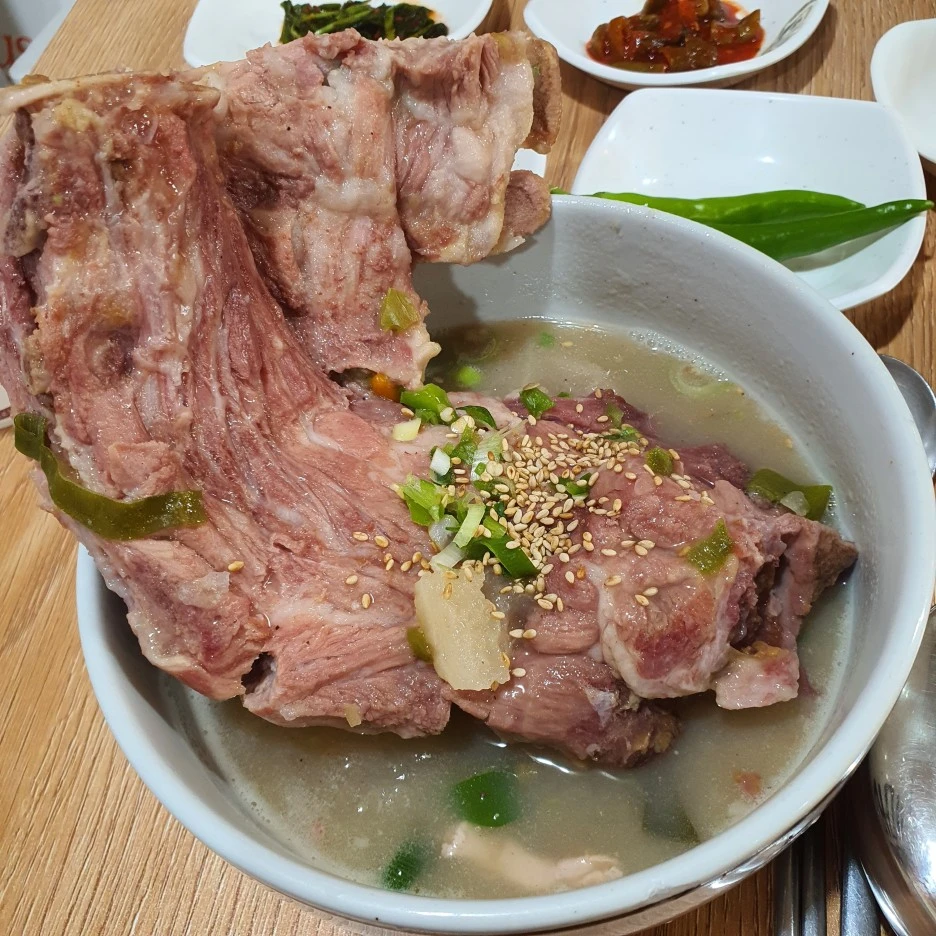일단 비주얼로 압도해버리고 시작하는 국밥. 저 커다란 면기를 뛰쳐나오려고 하고 있는 더 커다란 돼지 뼈를 보라. 먼저 접짝뼈국이 생소할 분들을 위해 설명드리자면, 돼지 뼈를 메밀가루와 무를 넣고 푹 고아 만든 돼지 국밥의 일종으로 부드럽고 걸쭉한 국물이 특징인 제주 향토 음식이다. 실제로도 굉장히 진하고 부드러운데 (맑은 감자탕 느낌) 돼지 냄새는 전혀 안 나서 돼지라고 말 하지 않으면 모를 정도. 특히 이 점포는 맛집으로 이미 소문이 자자한 나머지 오전 9시 오픈부터 가게 앞은 인산인해를 이루며, 심지어 1시 이후엔 재료 소진으로 마감하는 일이 잦다고 한다. (나는 11시 30분에 가서 30분 대기 후 거의 마지막 손님으로 먹음) 대기가 많아서 별 한 개 뺐는데 너무 맛있어서 반 개 더함. 원래 대기를 죄악시하는 나지만... 이건 기다릴 가치가 있다고 생각한다. 국물 마지막 한 방울까지 싹싹 다 먹고 모든 접시 설거지하고 나왔다. 다음번엔 고사리 해장국을 꼭 먹어봐야지.