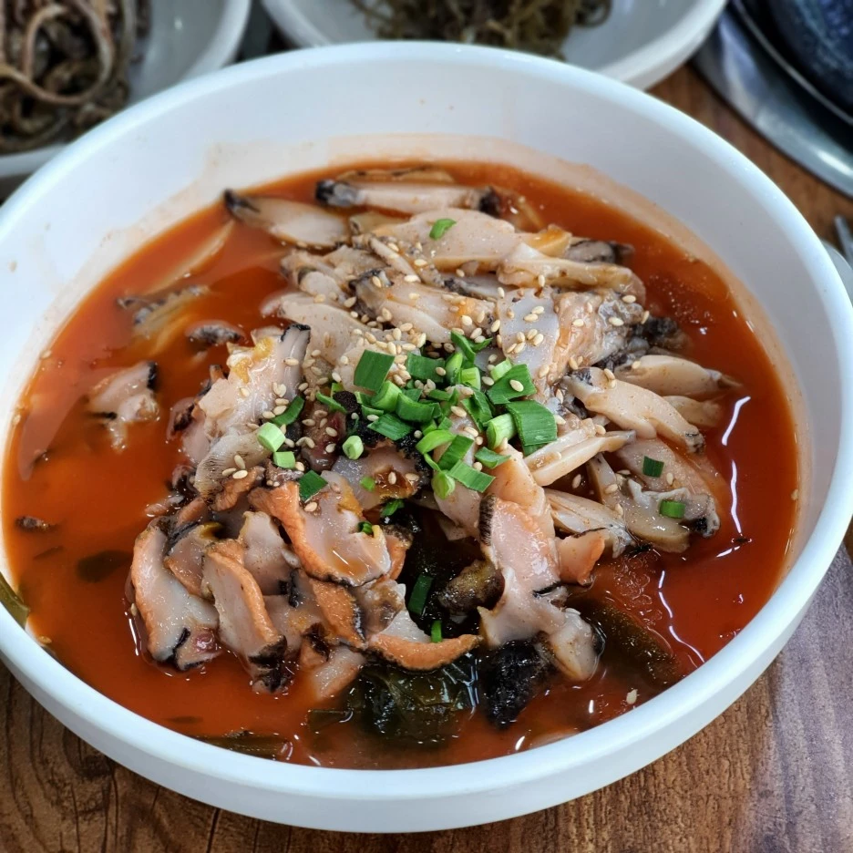 보이는가? 푸지게 담겨있는 전복과 뿔소라의 양이? 무심한 듯 시크하게의 정석을 보여주시는 사장님. 뿔소라도 전복도 야들야들 꼬독꼬독한 식감이 그 신선도를 짐작케 했다. 사실 이 가게는 원래 해물탕으로 유명한 집인데, 다소 이른 시간(오전 10시)에 방문했기 때문에 가볍게 물회를 시켰다. 그런데 웬걸. 띠용. 물회가 이 정도 퀄리티라니?! 그렇다면 해물탕은 안 봐도 대박이겠군. 엄마 모시고 다시 한 번 방문 예정. 기본 찬으로 나오는 전복장이나 고사리 무침 등도 다 일품이었다. (전복장이 맛있어서 따로 택배 주문을 했다) 그리고 물회도 국밥이냐고 묻는 사람들을 위해 첨언. 따뜻한 국물만 국밥이라는 편견을 버려. 밥을 말아먹을 수 있는 건 뭐든지 국밥이다. 여름 별미로 확고하게 자리 잡은 국밥계의 이단아, 국밥계의 민트 초코, 물회 만세.