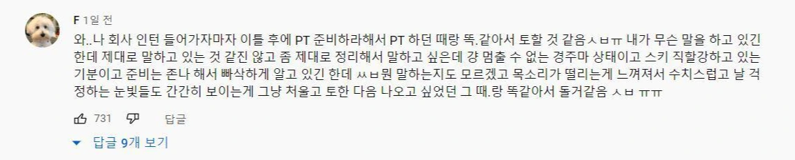 아마 주현영 배우를 포함한 SNL 제작진들은 '인턴 기자'의 모습을 그려내고 연습하고 세상에 선보이려고 훨씬 더 많은 시간을 실제 인턴처럼 떨었을지 모른다. 나는 그들이 이런 논란으로 기죽지 않고 더 많은 콘텐츠를, 더 적극적으로 생산해 주기를 바란다. 혹시 이 글에 대한 생산적인 지적? 반박? 뭐 암튼, 해주신다면 감사합니다.