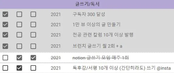 올해 초에 일 년 치 버킷리스트를 적으면서, <글쓰기> 카테고리를 따로 만들었다. 거기엔 올 한 해 꼭 달성하고 싶은 글쓰기 목표들을 적었다. 1) 구독자 300명 이상, 2) 조회수 1만 뷰 이상의 글 만들기, 3) 월 2회 이상 꾸준히 쓰기 등등.