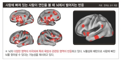 이른바 서로에게 푹 빠져 있는, 연애 초기의 연인들을 대상으로 실험을 했다. 남자에게는 여자친구 사진, 여자에게는 남자친구 사진을 보여줬다. 그리고 그들의 뇌를 fMRI로 찍었다. 연인의 얼굴을 봤을 때 활성화되는 뇌의 부위를 관찰해 본 것이다. 결과는 어땠을까? 바로 뇌의 '보상 체계 영역'이 아주 활발하게 활성화되었다. 보상 체계 영역이란 뭐냐. 알코올 중독자에게 술병을 보여주었을 때, 도박 중독자에게 카드를 보여주었을 때 미친 듯 활성화되는 곳이다. 그렇다. 초기 연인은 서로에게 중독 상태다.