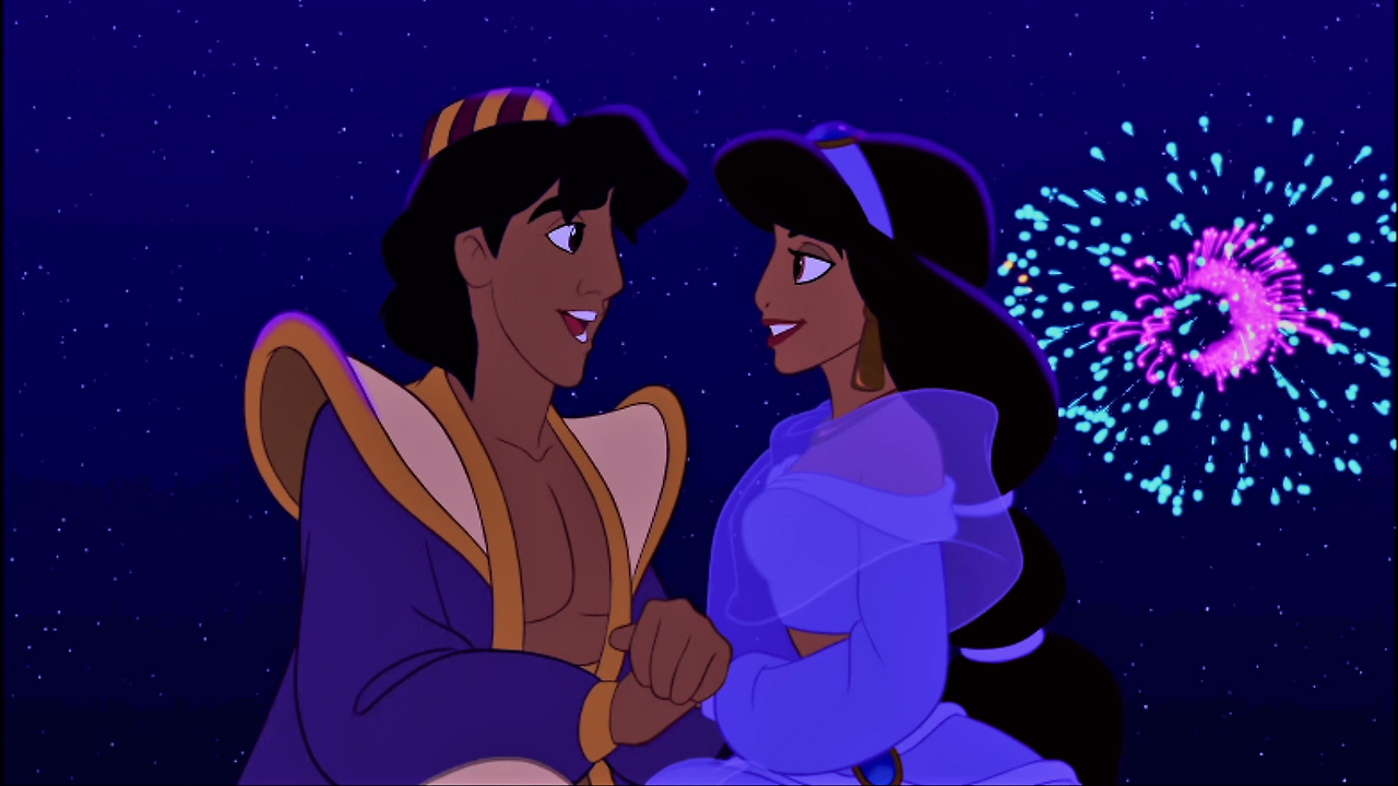뭔가 찝찝한 기분을 지울 수 없지만 다시 본론으로 돌아오자. 태생도 성격도 전혀 다른 둘을 사랑으로 묶어낼 수 있었던 것은 진정 무엇 때문이었을까. 나는 알라딘과 쟈스민, 둘 모두의 용기 덕택이었다고 생각한다. 그가 그녀를 발견하고 선뜻 다가갔던 용기, 그녀가 마침내는 경계를 풀고 마음을 열었던 용기. 서로에게는 큰 도박이었을지 모르는 선택이 결국 그들을 해피엔딩으로 이끌었다. 이야기의 제목이 <아라비안 나이트>가 아닌 <알라딘>인 이유 역시 여기에 있다. 그가 그녀에게 성큼성큼 다가갔던 그 대담함이 아니었으면 램프의 요정의 해방도, 아그라바의 첫 여성 술탄도, A whole new world라는 걸출한 음악도 없었을지 모른다.