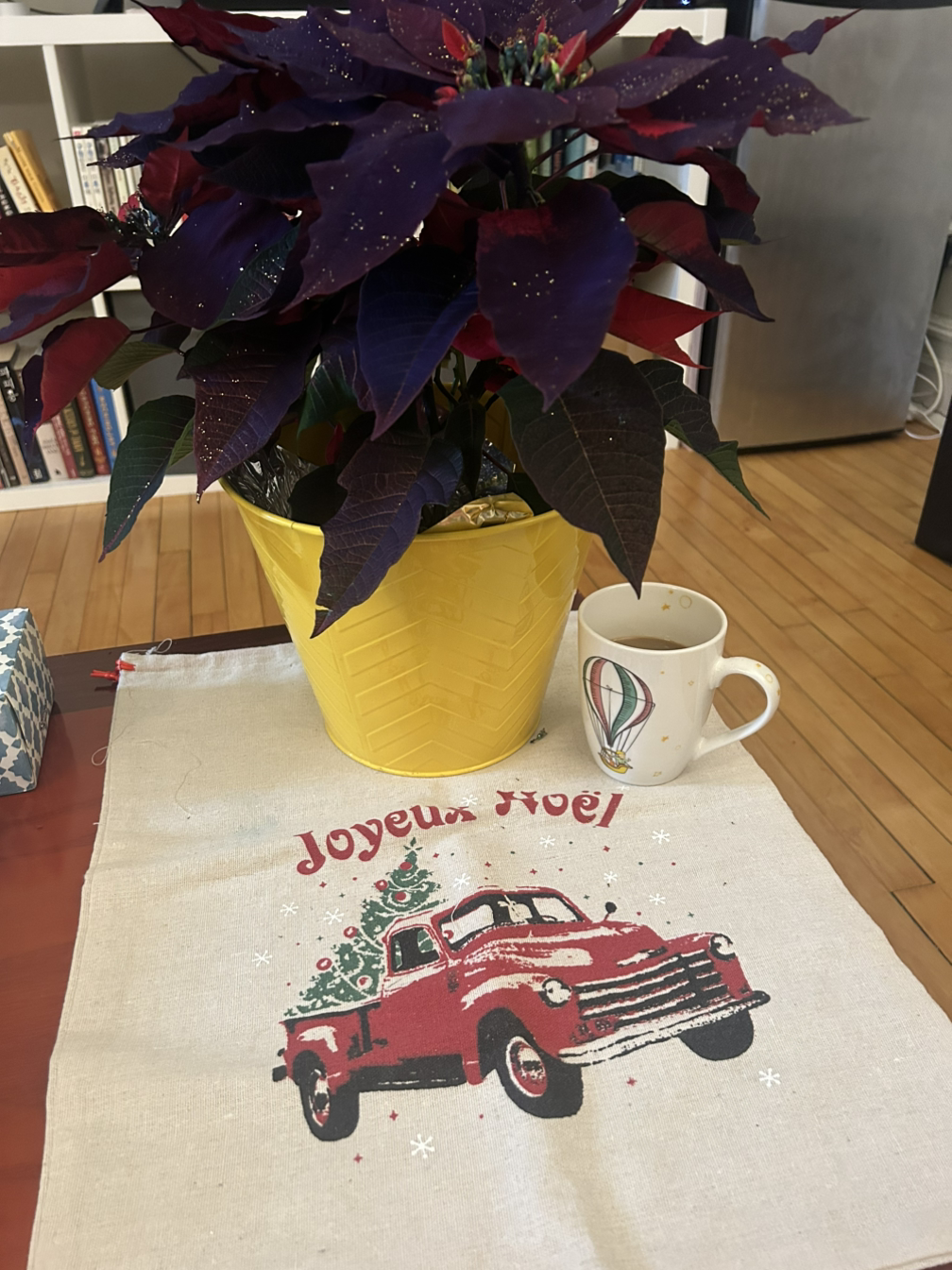 대신 맘에 드는 포인세타(Poinsettia)를 사서 돌아올 수 있었어요. 거실 탁자 위에 올려놓으니 사이즈도