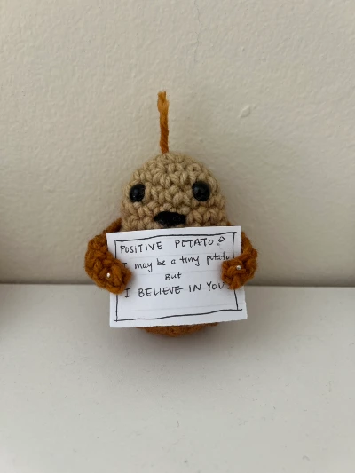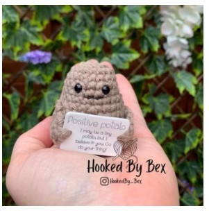 긍정적인 감자(PSITIVE POTATO)는 코바늘 뜨기 (croche)로 만든 작은 감자 인형으로, 크기는 약 7~8cm다. 이 사랑스러운 코바늘 뜨기 인형은 Bex Coster, 즉 Hooked by Bex라는 이름으로 알려진 사람이 만들었다. 그녀는 큰 조카가 태어났을 때 아기 부츠를 짜기 위해 코바늘뜨개질을 배웠다.