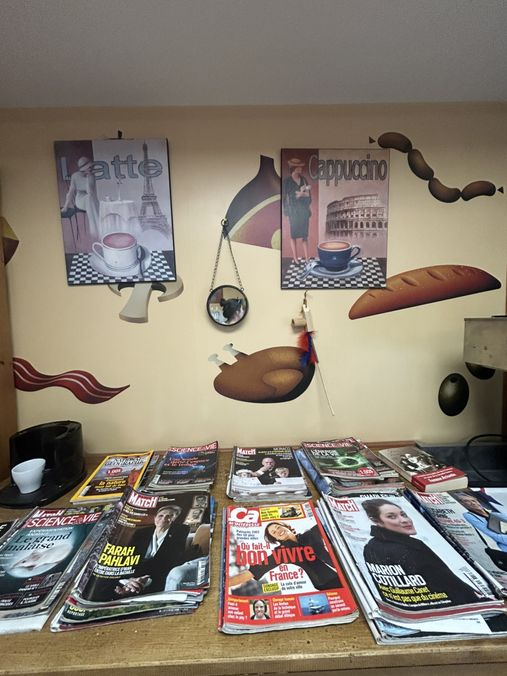 카페 안 이곳저곳은 세월을 훌쩍 넘은 잡지들과 이제는 더 이상 작동하지 않은 커피 머신과 보기만 해도 정겨운 옛날 그림들이 걸려 있었다.