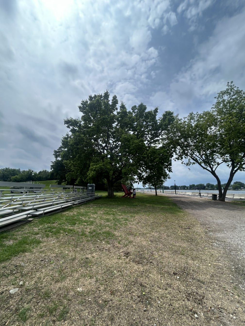 사람들이 생각보다 적어서 공원 안은 쾌적했고, 피크닉 테이블에서 바라본 마을 풍경은 한가로웠다.