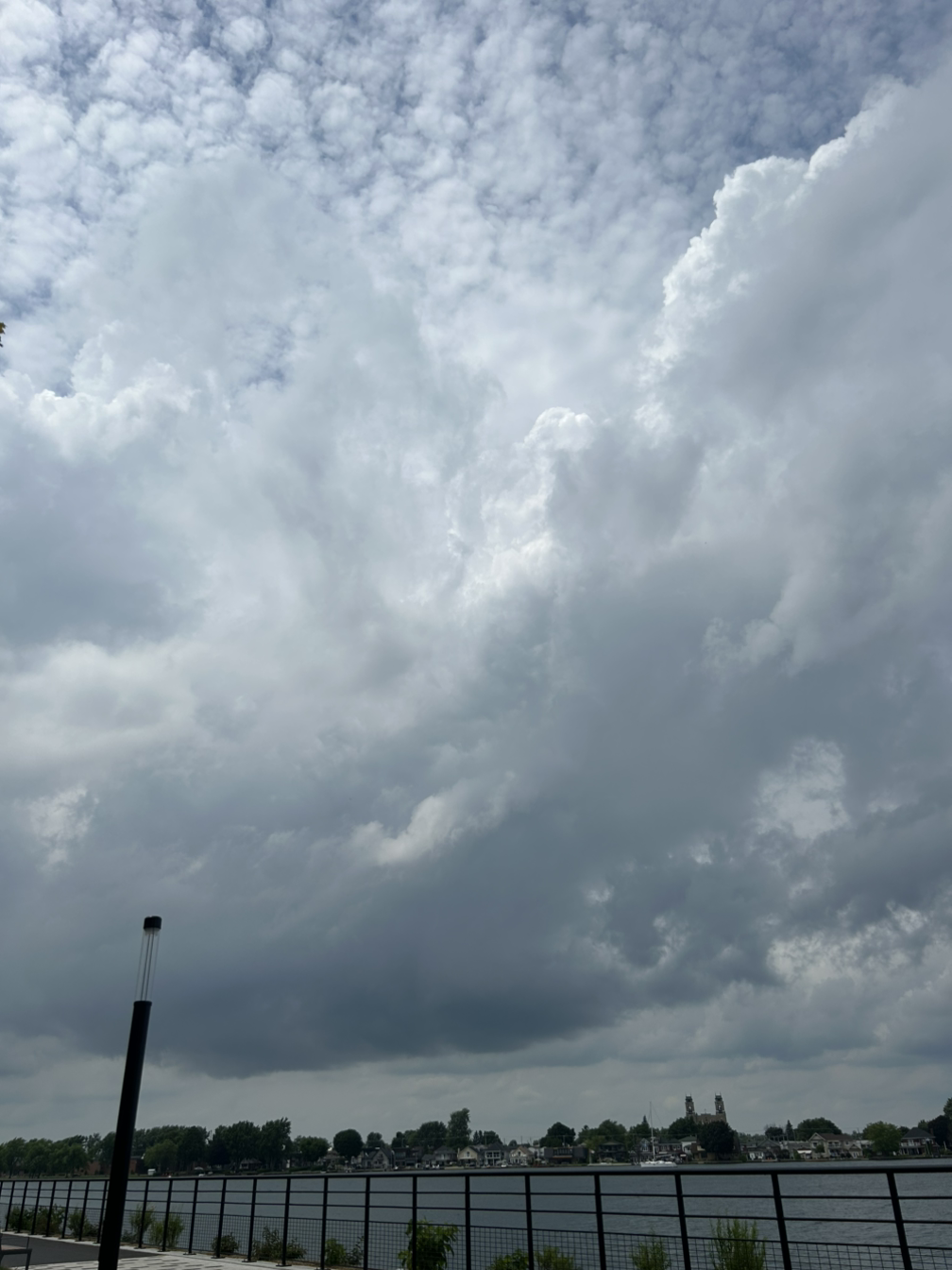 먹구름은 물먹은 담요처럼 낮게 내려앉고, 후덥지근한 바람이 불면서 한 두 방울 비가 내린다.