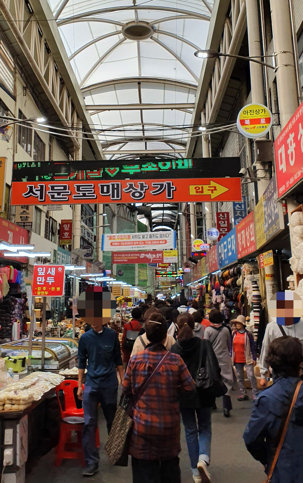 다음 날 아침, 아점을 해결하기 위해 서문시장 내에 갈비찜 골목으로 갔다. 갈비찜이 유명하다고 해서 무작정 골목으로 들어갔는데, 막상 어느 집으로 들어가야 할지 갈등이 시작됐다. 골목 첫 번째 집에서 호객행위를 해서 붙잡힐 뻔했는데, 뿌리치고 나와 한 집 지날 때마다 호객행위는 이어졌다. 결국 줄 서서 대기 중인 어느 집 앞에서 우리도 줄을 섰다. 단순히 사람 북적이는 집이 맛집일 거라는 생각에서였다. 다른 집은 한산한데 우리가 줄 선 집은 우리 뒤로도 꽤 줄을 섰다.