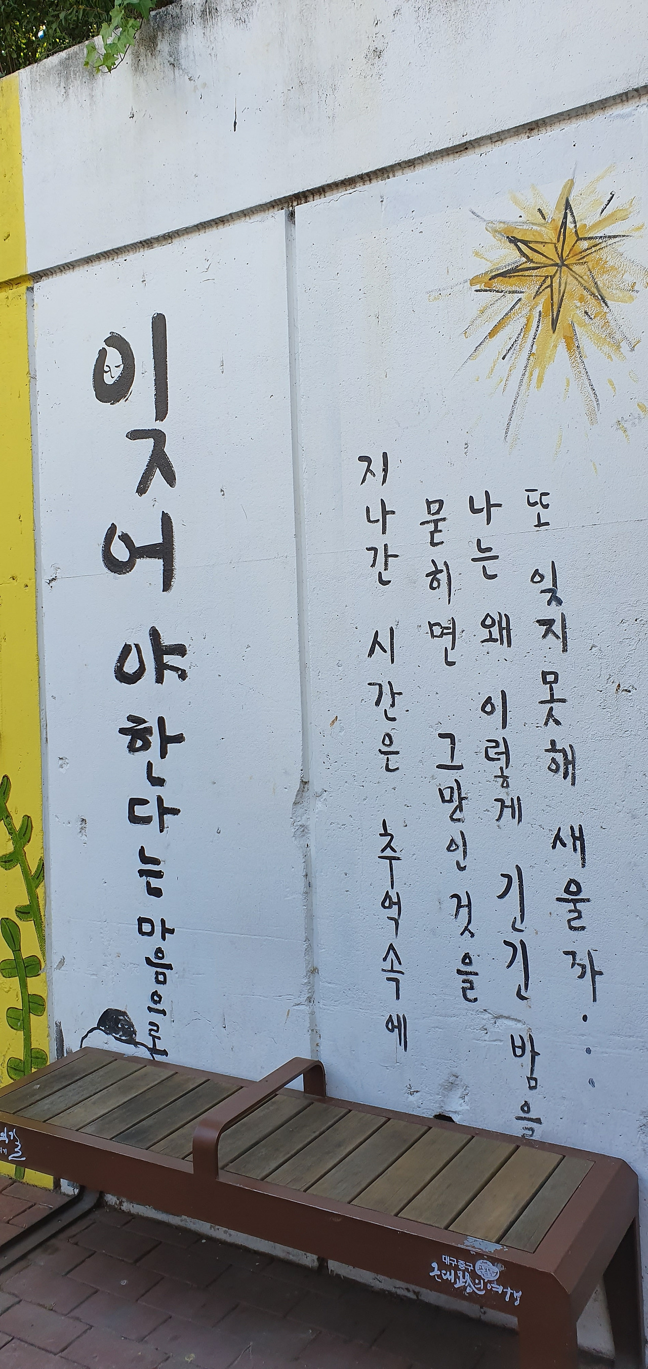 그다음 찾아간 곳은 '김광석 거리'였다. 김광석이 살았던 대봉동 방천시장 인근 좁다란 골목길에 김광석의 삶을 되돌아볼 수 있게 조성해 두었다. 수학여행 온 여고생들이 우르르 몰려와서 무척 붐볐지만, 그 거리에서 마주치는 해맑은 미소와 웃음소리가 있어 더 기억에 남는다.