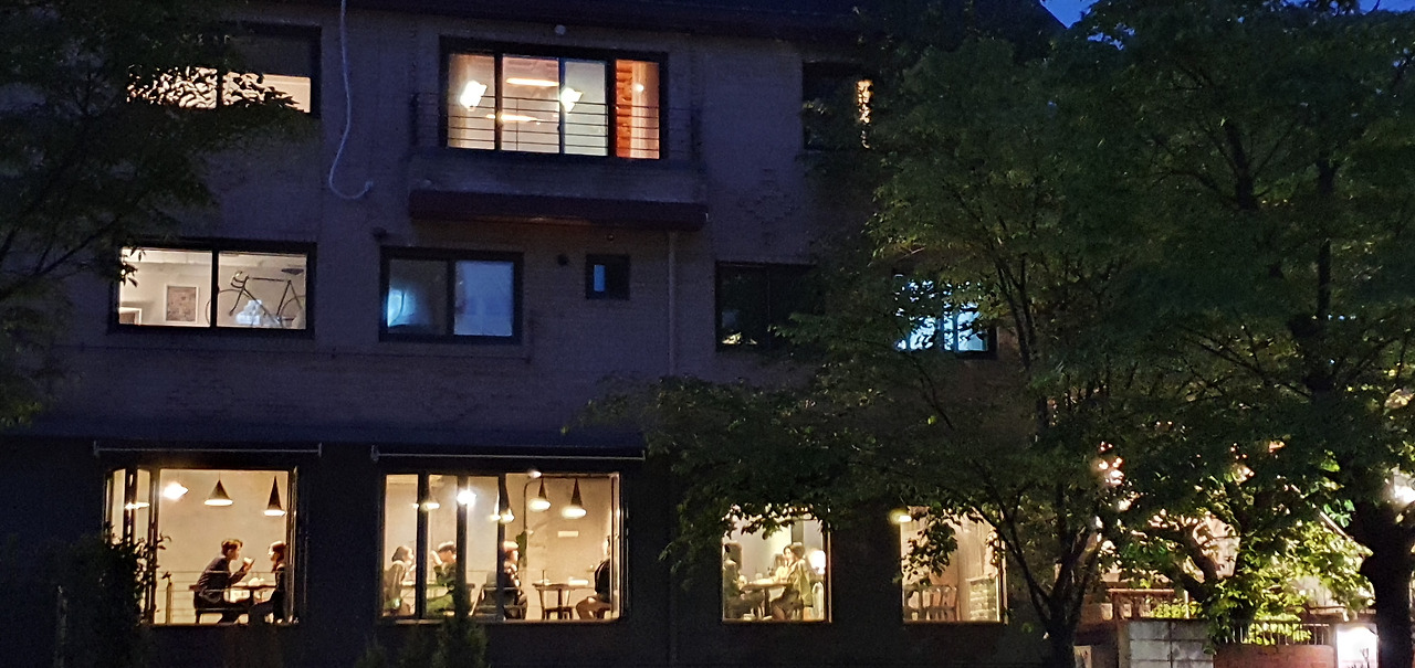 마주 앉은 연인들의 오붓한 모습, 멀리서도 발걸음을 멈출 수밖에 없다. 특히 분위기 좋은 와인바, 카페 루프탑, 꼬치구이 집 바에 나란히 앉아 한잔하는 모습은 그야말로 눈을 뗄 수 없다. 거기다 오늘은 연남동 입구에 들어서면서 발걸음을 잡는 장면들이 또 있었는데, 바로 잔디밭이나 벤치에 삼삼오오 모여 치맥을 즐기는 사람들이었다.