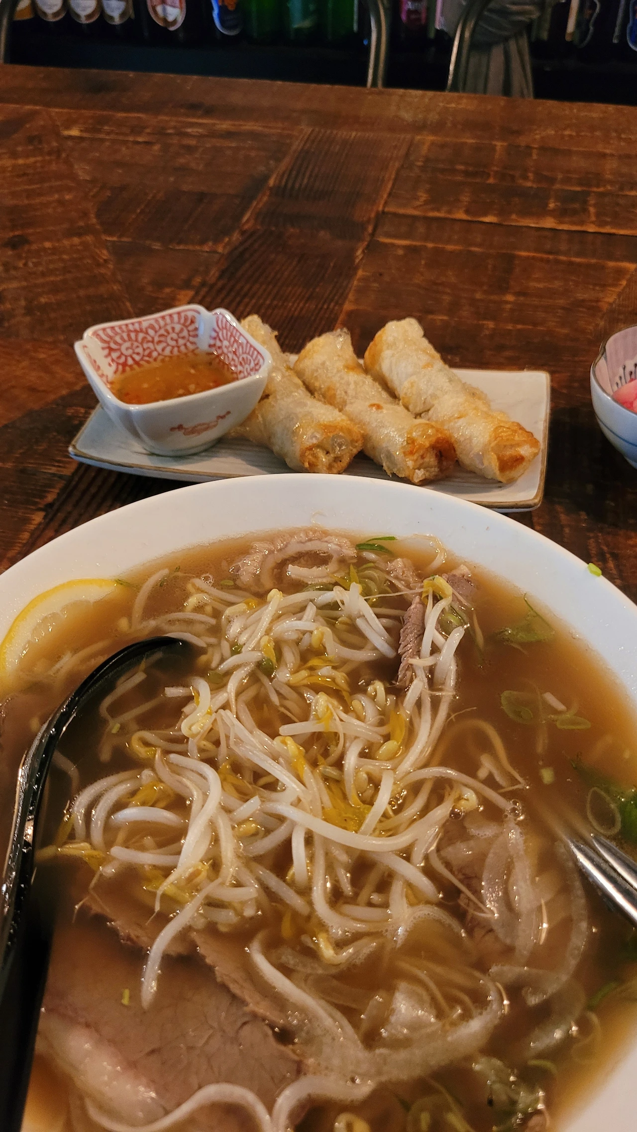 초췌해진 모습으로, 근처 하노이 식당을 찾아 쌀국수와 짜조로 알찬 하루의 끝을 보냈다.