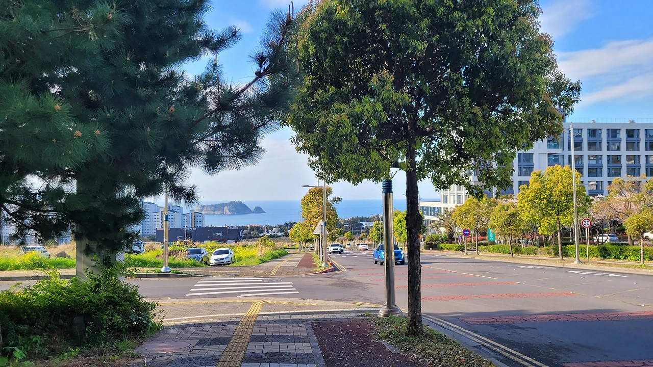 그래도 햇살이 들어오는 아침을 맞이하고, 창문을 열어보니, 하늘이 엄청 맑았다. 양치만 하고, 모자를 뒤집어 쓴 뒤에 카메라를 들고, 무작정 나갔다. 오전 8시 20분? 서귀포의 아침