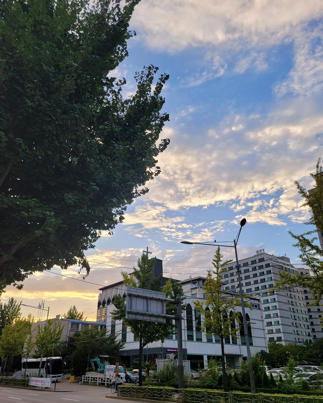 토요일 반나절이 훌쩍 지나고, 다시 교회로 가는 길..자전거를 타다가 신호 대기 중 바라본 하늘..