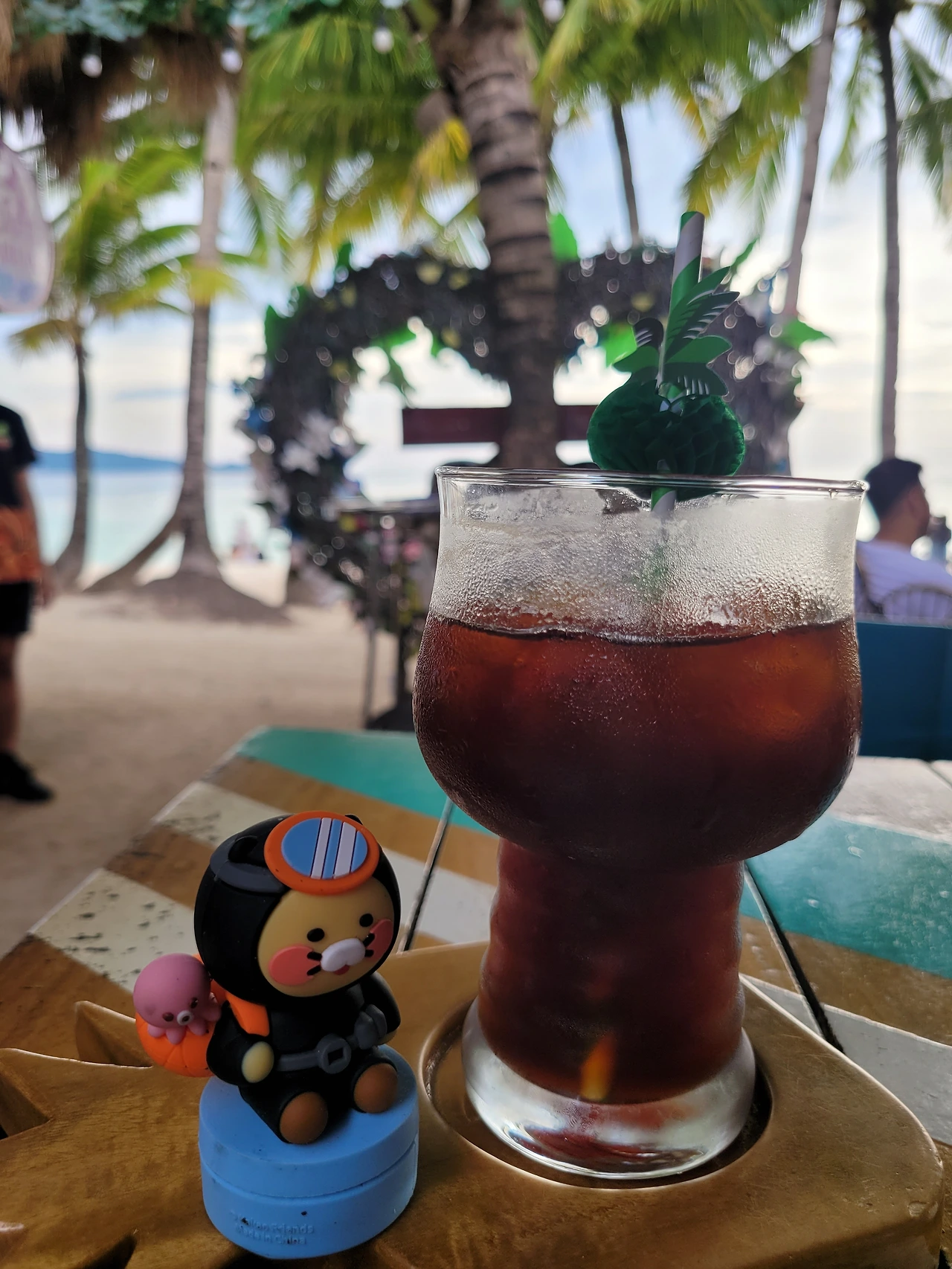 전날, 지루하다고 했던 나의 망언을 돌아본다. 그리고, 언니가 샤워를 하는 동안 나는 근처 카페에 가서 커피 타임을 즐기겠다고 했다. 200페소 (약, 5000원, 팁포함) 의 아이스 아메리카노를 시키고 바다를 바라보고 앉았다. 커피 맛은 사실 별로였다. 인스턴트 커피에 물을 탄 맛이었다. 에스프레소에서 추출한 커피는 아니었다. 그렇지만 뷰가 좋아서 용인이 된다.