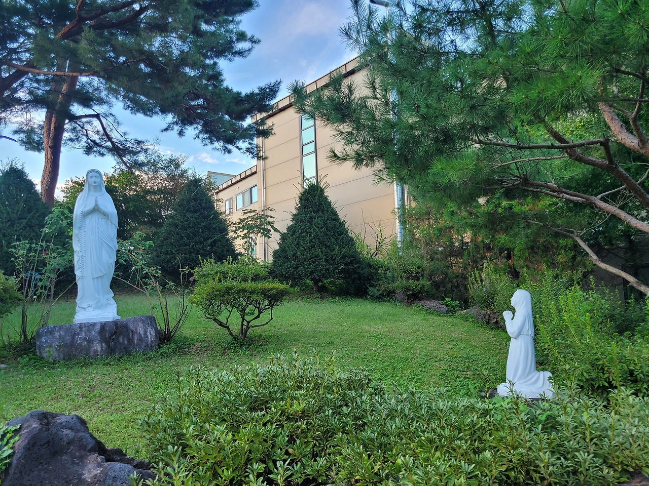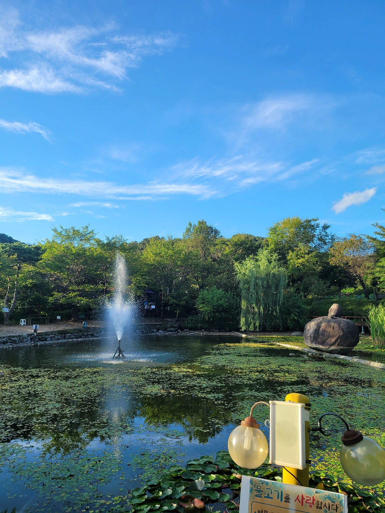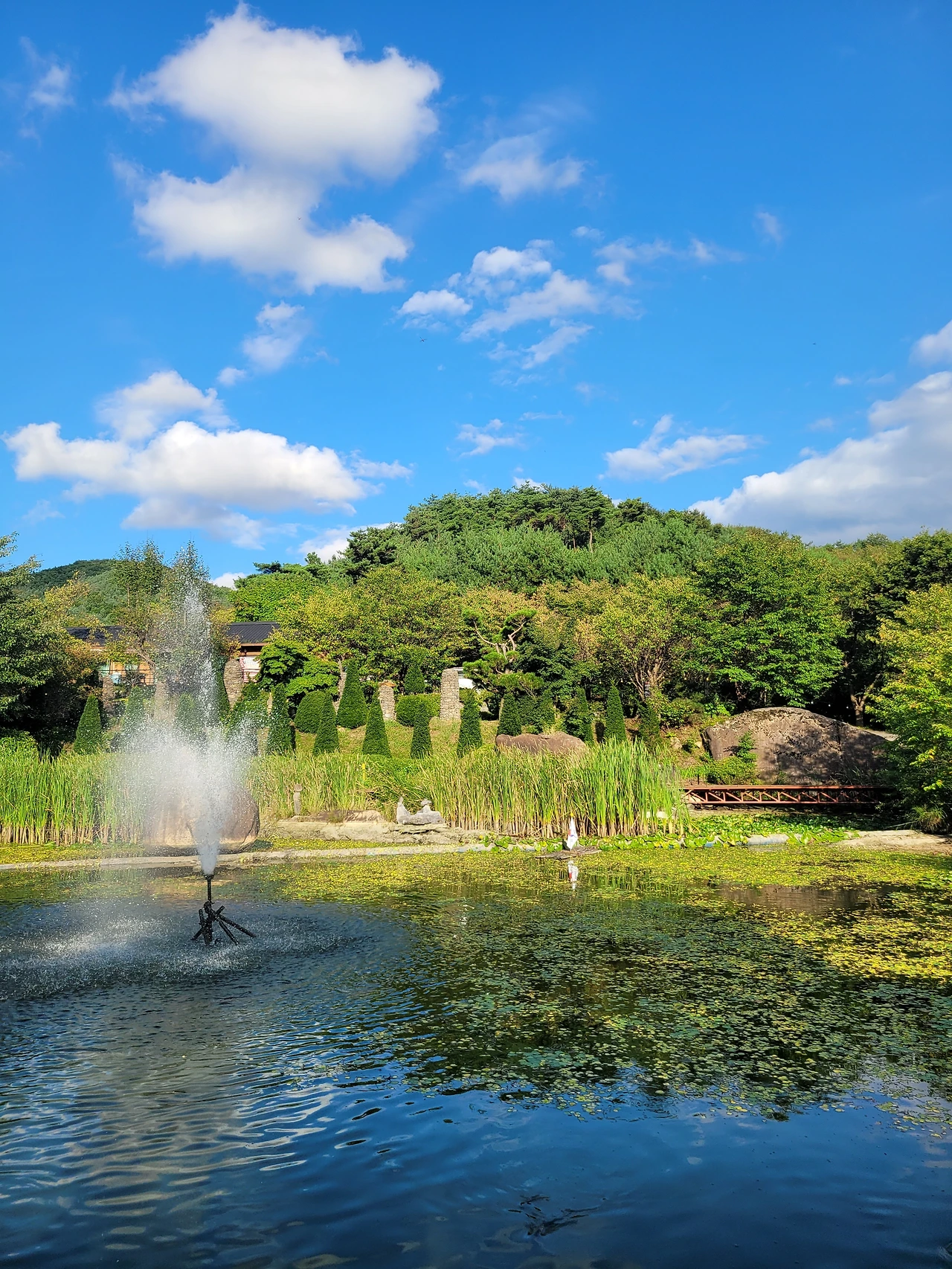 막국수집 주변 잘 조경된 분수 정원에서