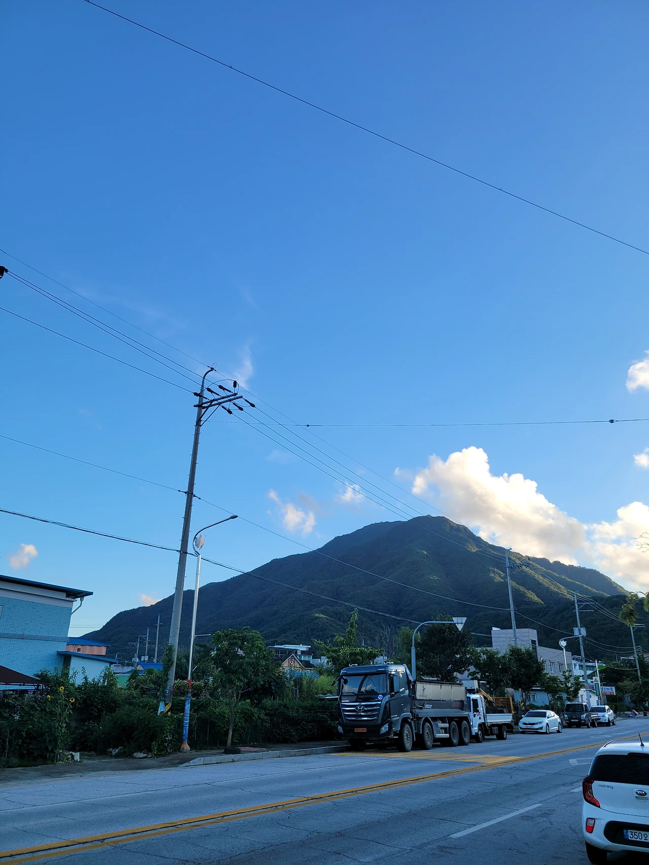 볕은 지구온난화로 한없이 따갑지만 파란 하늘과 흰구름은